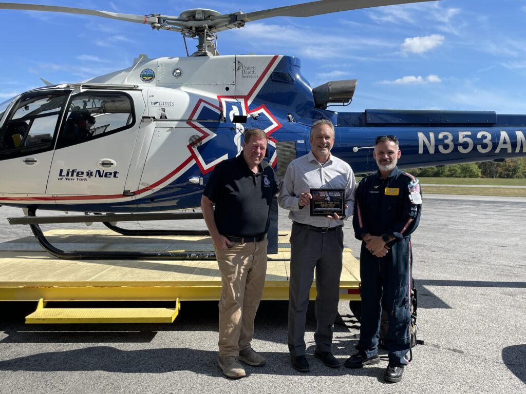 LifeNet of New York 7-8 Marks 15 Years of Lifesaving Service Share On... by Air Methods posted September 29, 2025 Air Medical Team Reunites with Former Patients, Reflecting on Thousands of Lives Impacted SIDNEY, NY – September 29, 2025 – LifeNet of New York 7-8, a trusted air medical provider serving the Southern Tier and Catskill regions, proudly celebrated 15 years of lifesaving service with a special event on Saturday, Sept. 27, where more than 60 people were in attendance. Held at the LifeNet NY base at Sidney Municipal Airport, the celebration brought together former patients and their families, community members, local partners, and current and former crew members to mark this important milestone. Fifteen years ago, LifeNet NY opened its Sidney base to enhance emergency medical services in a region underserved by Level I trauma centers. Since then, the team has cared for thousands of patients, providing critical interventions and giving countless families more tomorrows. One of those patients is 16-year-old Anielle “AK” McEwan-Lomnicki. Two years ago, McEwan-Lomnicki was walking home from school when she was struck by a drunk driver. Due to poor weather conditions, the Sidney-based LifeNet NY crew was unable to fly. Instead, the flight clinicians joined ground EMS, delivering hospital-level care en route and rendezvousing with sister base Guthrie Air, who then airlifted McEwan-Lomnicki to Upstate Golisano Children’s Hospital. “Time was of the essence,” said Delsa McEwan, McEwan-Lomnicki’s mother. “The bleeding and pressure in her head were so extreme. The trauma center by car is about an hour and a half to two hours away. Doctors told us it would have been a different scenario without these frontline heroes. You can go to the top specialists—but it’s how fast you get there. That’s what saved her.” Today, she is fully recovered and back to playing sports, aside from the occasional soreness. McEwan-Lomnicki and her parents attended the celebration to personally thank the flight crews who played such a pivotal role in her survival. Also in attendance were State Senator Peter Oberacker, presenting the Empire Award, and Assemblymembers Chris Tague and Joe Angelino, who presented LifeNet NY with a formal citation recognizing the base as a vital community resource and commending the crews for their dedication and lifesaving service. “For 15 years, LifeNet of New York has been answering the call when our communities need them most,” said Senator Oberacker. “As a first responder, I know firsthand the critical importance of having partners like LifeNet ready to deliver advanced care when every second counts. Their skill and dedication have saved countless lives, and I’m grateful for the incredible service they provide to our region. Congratulations to the entire LifeNet team on this milestone anniversary.” Often referred to as “flying ERs,” LifeNet NY delivers rapid, advanced medical care to rural and underserved areas where minutes can mean the difference between life and death. LifeNet of New York 7-8 is one of 12 strategically located bases across the state that operate 24/7/365, forming a comprehensive EMS network. Each aircraft is staffed by highly trained flight nurses and paramedics and equipped to deliver ICU-level care in flight. “LifeNet has been more than just a service, it has been a lifeline for our community,” State Assemblymember Angelino. “Their professionalism, compassion, and readiness have made all the difference when emergencies occur. I’m deeply grateful for their commitment to serving our region and proud of the difference they make in saving lives every single day.” LifeNet NY’s ongoing investment in the region continues to make a profound impact. In 2021, following a new state law allowing air ambulances to carry and administer blood products, every LifeNet base in New York became equipped to carry blood on every transport. In 2022, Air Methods — LifeNet NY’s parent company and the nation’s leading air medical provider — invested $31 million to upgrade aircraft and onboard clinical equipment across New York, including new ventilators, IV pumps, and additional enhancements to patient monitoring systems. Most recently, LifeNet added the AutoPulse® NXT, an automated CPR device that provides continuous chest compressions during flight, allowing clinicians to perform additional lifesaving interventions. These investments are part of LifeNet NY’s commitment to partnering with local first responders and hospitals to continually improve patient outcomes. In addition to providing high-quality care, LifeNet NY is in-network with most major insurance providers. Their patient advocacy program also works directly with patients and families, regardless of insurance status, to ensure access to care remains affordable and stress-free. Prepaid memberships are not required with any Air Methods provider.