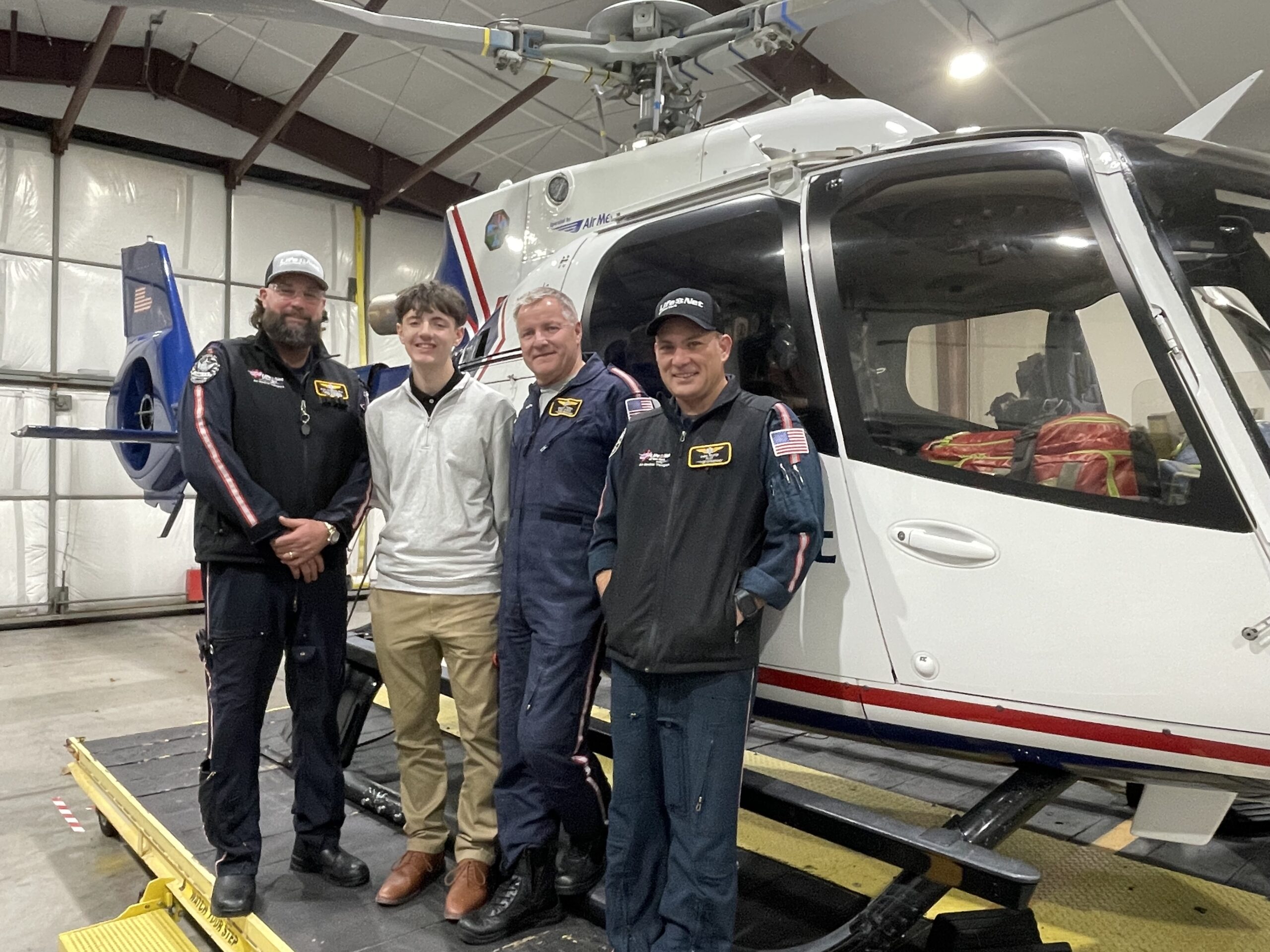 LifeNet of New York Team Reunites with Former Patient Share On... by Air Methods posted November 17, 2025 Patient, Family Thank Flight Crew HARRIS, NY – November 17, 2025 – In a season of being grateful, former patient George Krause, accompanied by his family, reunited with LifeNet of New York’s 7-5 air medical team last Thursday at their base in Harris. Krause and his family expressed appreciation for the exceptional care he received from the entire team, including Lead Pilot Chris Prater, Flight Paramedic Ryon Anderson, and Flight Nurse William Terry. Seventeen-year-old Krause, a standout pole vaulter, suffered a life-threatening accident during the New York state track and field competition at Middletown High School in June. On his third jump of the day, he sprinted down the runway and planted his pole. The pole suddenly snapped in four pieces, hitting him in the head and leaving him unconscious on the field. “Without a doubt, that day was probably one of the worst days of my life,” said Krause’s mother, Christa Pike-Krause. “George didn’t know where he was, what year, or who the president was. He was clearly hurt.” After regaining consciousness but still disoriented, Krause was rushed by ambulance to Garnett Health Medical Center in Middletown. Following medical evaluation, Krause was airlifted by LifeNet of New York 7-5 to Albany Medical Center for specialized care after Garnett Health doctors discovered he had symptoms of a traumatic brain injury – fracturing his skull in four places and suffering two subdural hematomas. “We’re a very close family, and the LifeNet team made sure we were all together and reassured us every step of the way,” said Pike-Krause. “The crew was so kind to a mom who was in shock. Their compassion and professionalism made an unbearable situation manageable. They treated us like family, not just patients.” Krause spent several days at Albany Medical Center under close observation. Miraculously, the bleeding and swelling in his brain subsided on its own, and surgery was not required. Doctors initially cautioned that it could take a year before Krause could return to athletics. However, in a testament to his determination and healing, Krause was cleared to pole vault again just months after the accident. Today, Krause has returned not only to pole vaulting but also to competing in cross country and is looking forward to another go at a state track and field competition someday soon. “With Thanksgiving just around the corner and a time to be grateful, our team is especially grateful to see that George is doing so well,” said Anderson. “Reconnecting with George and his family in such positive circumstances is a true gift. Moments like these remind us why we do what we do. These reunions are a celebration of recovery, resilience, and the bonds formed through care.” While he doesn’t remember the helicopter ride or much of the accident itself, his story is one of resilience and gratitude. “Reuniting with the LifeNet of New York flight crew meant so much to me and my family. Even though I don’t remember much about that day, talking to my mom afterwards, I know the flight team had a huge impact on helping not only me, but my mom,” said Krause. “Seeing the people who helped me get the care I needed and being able to thank them in person was really special. Their care and support made all the difference during one of the toughest times in my life, and I’ll always be grateful for everything they did.” The LifeNet of New York team is certified and has state-of-the-art specialty care training that provides the same level of care one would receive in the hospital during air medical transport from the scene or for interfacility transports, like the care Krause received from hospital to hospital. The team is equipped with industry-leading medical devices and advanced technologies, enabling them to perform advanced airway interventions, cardiac and blood flow monitoring, medication administration, and other surgical procedures in flight. The program is accredited by the Commission on Accreditation of Medical Transport Systems (CAMTS) — the highest standards in safety, clinical practice, quality assurance, and training in the industry. LifeNet of New York remains focused on accessibility. The program in-network with most major insurance providers, and its dedicated patient advocacy team works directly with patients and families to ensure that financial concerns never stand in the way of receiving care. No prepaid membership is ever required. “Like any mom, I’ll never forget that day,” said Pike. “But thanks to the incredible care he received — from the first responders and hospital staff to the flight crew — my son is alive, healthy, and back to doing what he loves. We couldn’t be more grateful.” Pictures of George’s reunion with LifeNet of New York can be viewed here.